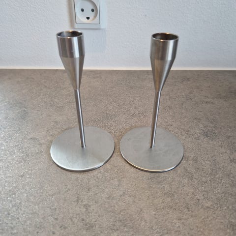 2 lysestager med manchet dia. 2 cm. Mars er H: 14 cm og Venus er H: 21 cm. Samlet pris