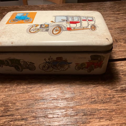 Andet, Gl. store kagedåser, 4 stk., 1. Vin rød med blomster motiv 27 cm i dia. og 12 cm høj.