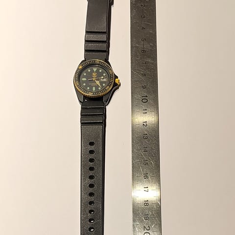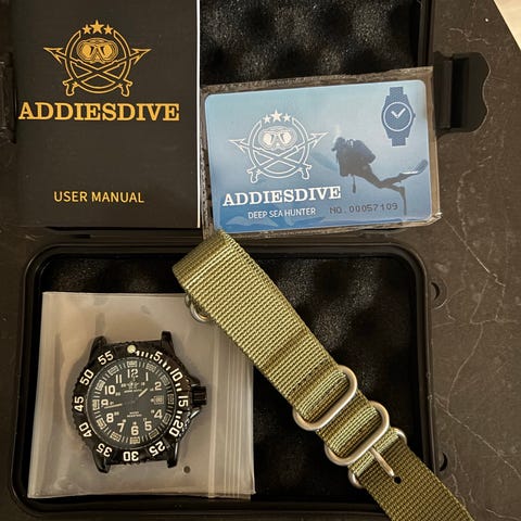 Dykkerur, Aquanautic, Donati Firenze 42 mm selvoptræk. I kasse af rustfrit stål samt glas bagside. Rød urskive med dato- & måneds visning. Vandtæt til 200 m. Sort rem.