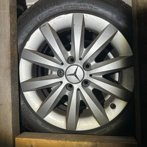Hjulene står og skal afhentes ved Lysdahl Simonsen i Silkeborg.