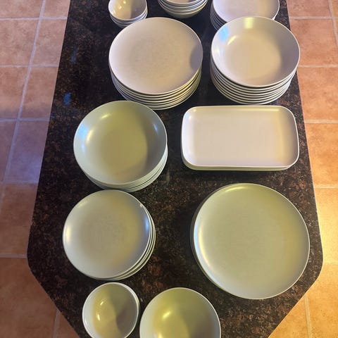 7 lyserøde middagstallerkner (værdi 175kr.)