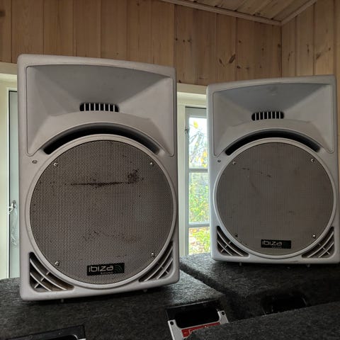 Gerne bytte med mixer, subwoofer 18". diskolys.2 mindre højtaler,