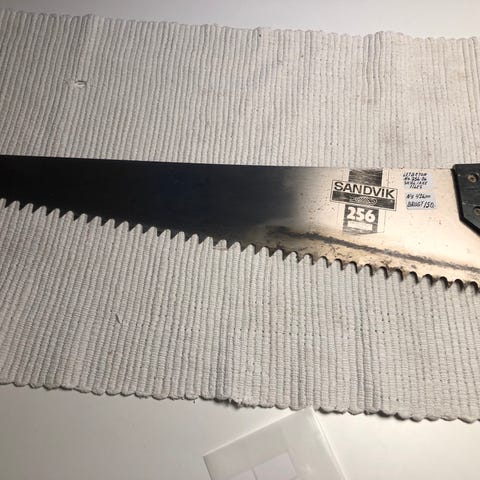 Sav, gammelt håndværktøj fra min bedstefars tid, denne oveni købet repareret, viser hvilken værdi de havde for den enkelte håndværker (kan også hænges op - meget dekorativ) Har også en fuksvans til 25 kr