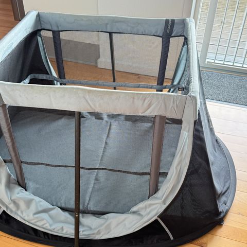 Vi sælger vores rejseseng som vi købte til vores baby, men kun har brugt én gang, da vores barn aldrig fik lært at sove i den og foretrak at sove i sine forældres seng.