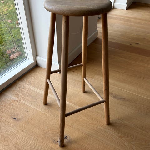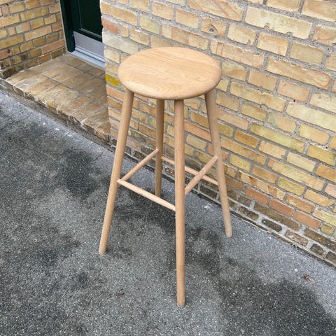 En smuk højstol i bøgetræ i sand bondestil. Stolen er blevet restaureret (fjernelse af gammelt lak, grundig slibning og højskvalitetsolie).