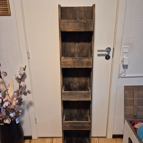 Hylde, reol i egetræ.
