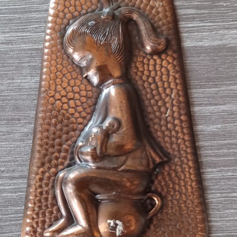 Vægrelief i kobber med fugle og rose. De har patina. rosen er solgt