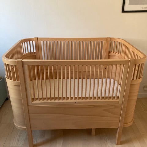 Sengen er fremstillet i træ med tremmer, hvilket giver god ventilation og tryghed for barnet. Der er sikkerhedsplast ved lamellerne, så små fingre ikke kommer i klemme, og begge madrasdele er økologiske friton-madrasser. Den er let at skille ad og transportere og kan nemt være i en bil.