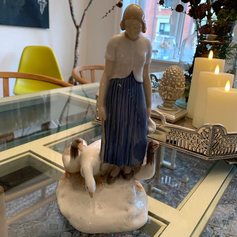 motiv: BONDEPIGE MED 3 FÅR, B&G NR.2010 B&G FIGUR, BondePIGE HYRDE MED SIT FÅR OG 2LAM