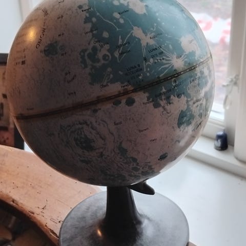 Måneglobus fra SCAN GLOBE, viser kratere og månelandskaber.