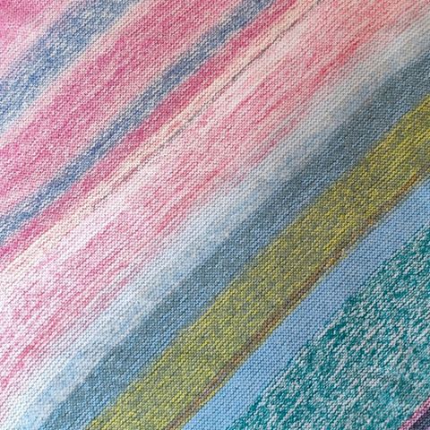 Vintage strik i masser af glade farver. Patchwork strik hvor alle firkanter er håndsyet sammen. Det er ikke nyt, men synes det er pænt. Jeg har ikke fået det brugt de sidste år, så nu må det videre. Masser af garn i dette håndstrikkede vintage tæppe. Ved desværre ikke hvilken slags garn det er strikket af.