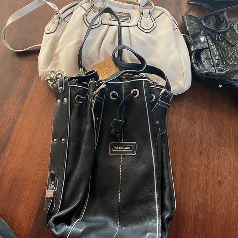 Helt ny hvid taske vistnok i kunstlæder fra Dress Collection med flere indvendige rum bla med lynlås og ekstra lang sele. Aldrig brugt men har fået lidt farve af solen så den ikke er skinnende hvid med lidt mere råhvid. 46 cm bred og 30 høj.