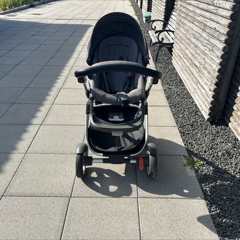 Der medfølger også klapvognsdel med, som kan vendes ind- og mod.