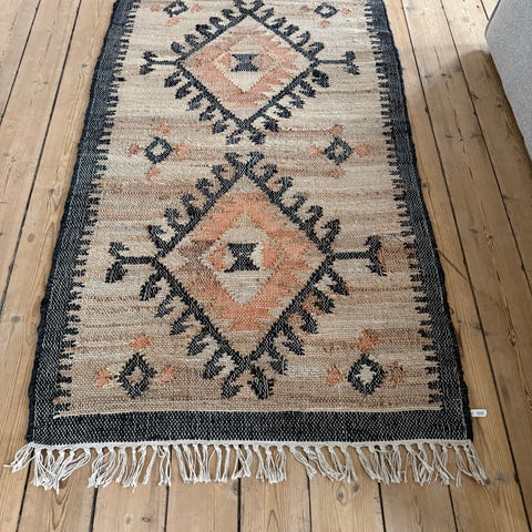 Smukt håndhævet tæppe i 70% søgræs, 30% bomuld.