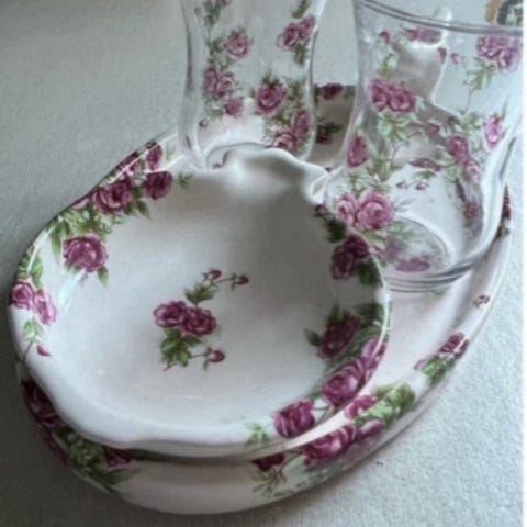 Porcelæn, Te sæt, FAPOR, Tekande - sukkerskål - flødekande med blå blomster + gul deco.
