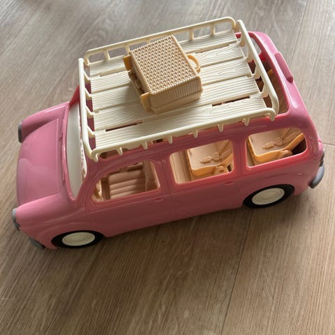 Sylvanian Families legetøjsbil i lyserød. Det medfølger 4 figurer.