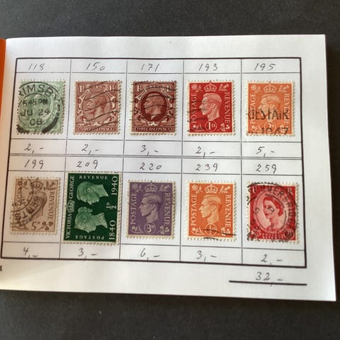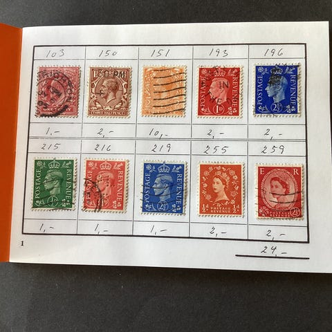 England, stemplet, Udvalgshæfte med mest nyere mærker. Katalogværdi optalt til kr.1076,-. Udpluk af siderne er vist på billederne.