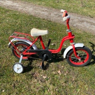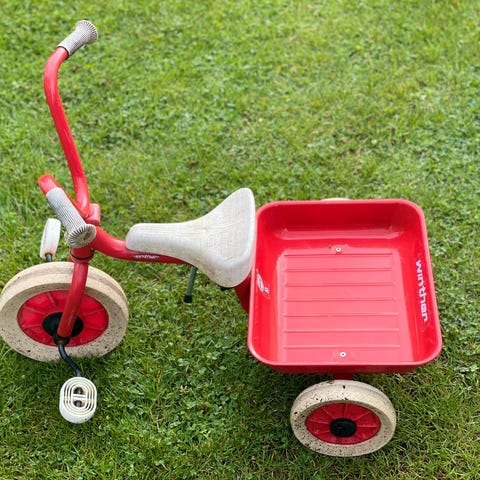 Fed winther vintage børnecykel i rød farve og rød / grøn styr.