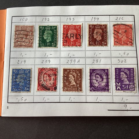 England, stemplet, Udvalgshæfte med en del bedre mærker. Katalogværdi optalt til kr.2599,-. Udpluk af siderne er vist på billederne