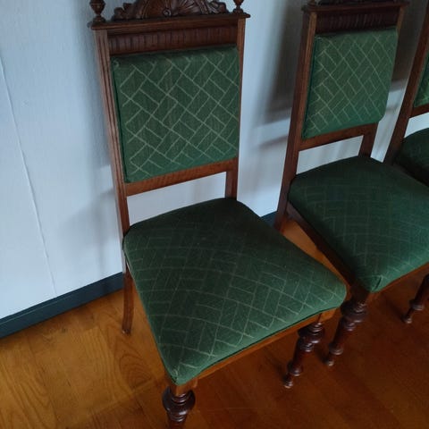 2 stk. Spisebordsstol, TRÆ & STOF, - sælges !