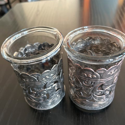 2 fyrfadslysestager i Tin