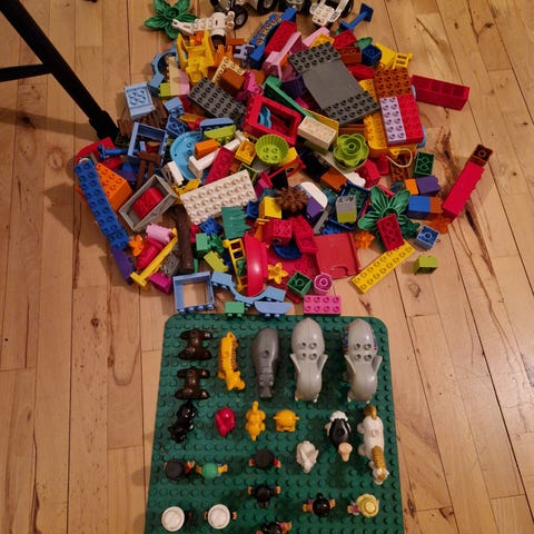 Sandkasse, dyr, klodser, legoklodser, Duplo.