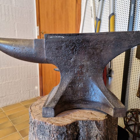 Lang ambolt, 90 cm står flot uden brugsmærker, er oplagt for en blikkenslager eller andre som arbejder meget i tyndplade, er en "ene"er som der findes meget få af i Danmark 3850 kr. & prisen er fast.