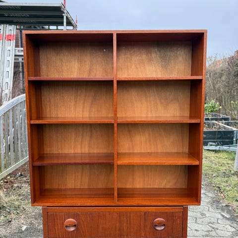AT-BO lille reol/CD reol i mahogni/kirsebær sælges. (ved ikke hvilken træsort)