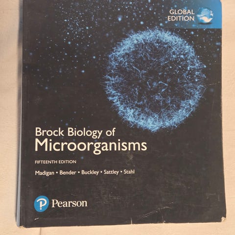Pearson Brock Biology of Microorganisms Textbook, fifteenth edition, covering key topics in biology related to microorganisms. The book is designed for educational use in biology studies.