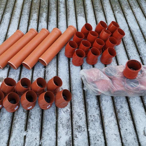 Hel flyttekasse med kloak og afløbsrør. Alt nyt.