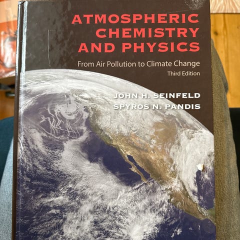 Wiley Atmospheric Chemistry and Physics Textbook covering topics such as air pollution and climate change. Third edition authored by John H. Seinfeld and Spyros N. Pandis. Relevant for studies in physics.