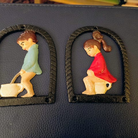 Toiletskilt, pige der sidder på potte