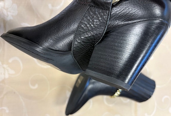 Flot ur med sort læderrem og brugsspor. Æske medfølger.
