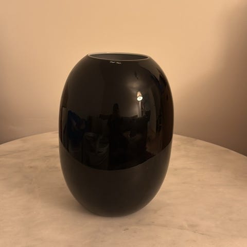 To styks flotte pit hegn vaser i sort og hvid fremstår som nye klar til at få blomster i sælges samlet