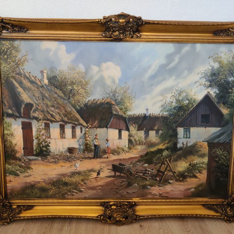 Oliemaleri, k.krautwald, motiv: Landskab, stil: Naturalistisk, b: 47 h: 37, mål med ramme 43 x 57. fra mit barndomshjem, er nok 50-80 år gl. Kjeld Krautwald,1919-2001 maler, f. i Roskilde, har fået en gennemgribende