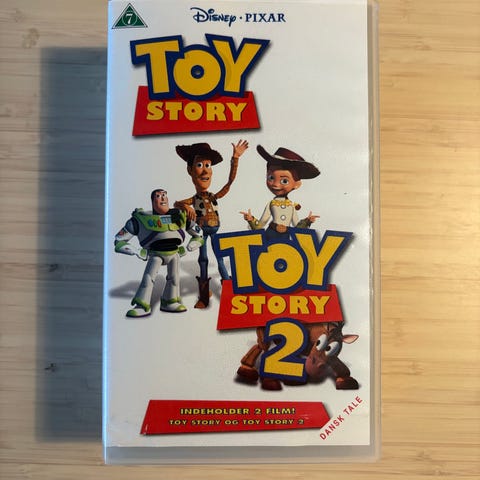 Disney Pixars Toy Story 1 og 2 VHS sæt med to film. Begge VHS-bånd indeholder animerede børnefilm med kendte figurer fra Toy Story-serien. Båndene er i standard VHS-format og leveres i originale plastikcovers med coverkunst på både for- og bagside. Sælges samlet.