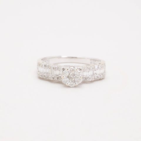 Illusion ring i 14K hvidguld med diamanter (0.7 ct), Str.