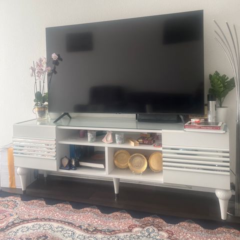 Med sin kompakte størrelse og rene linjer passer bordet perfekt under dit TV og tilbyder samtidig praktisk opbevaringsplads bag 2 døre til fjernbetjeninger, kabler eller andet tilbehør.