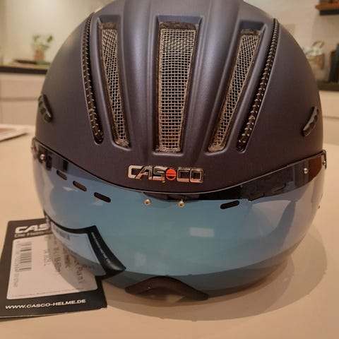 Ny cykelhjelm med speedmask. Casco Rocloc hagespænde. Str. large 58-60 cm.