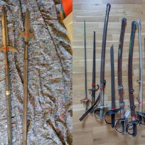 Mange forskellige pynte våben.