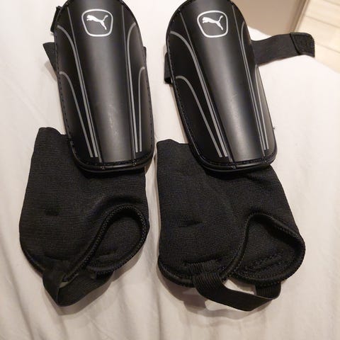 Sorte puma benskinner. Ikke brugt. Står ikke størrelse. Men passede min datter da hun var 8 og op. Kan passe dem endnu.