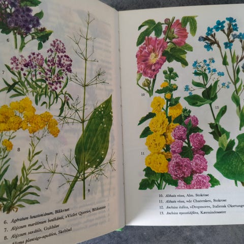 Havens Blomster i Farver af Eigil Kiær, eksemplar fra 1961, 192 sider, hardback med papiromslage, papiromslage med brugtspor, bog flot eksemplar, ISBN 4000000124