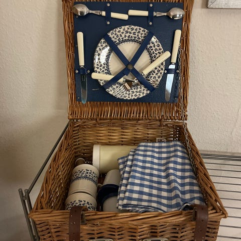 Picnickurv håndlavet fransk, med service, ny