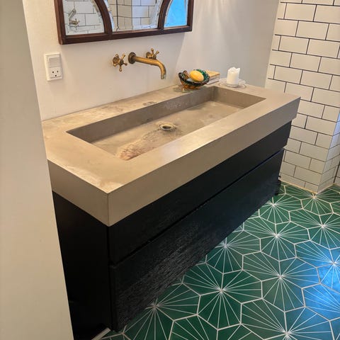 Sælger en flot, moderne designer vask med inkluderet skab fra svenske INR, da målene desværre ikke passede til mit nye badeværelse, og butikken ikke tager retur.