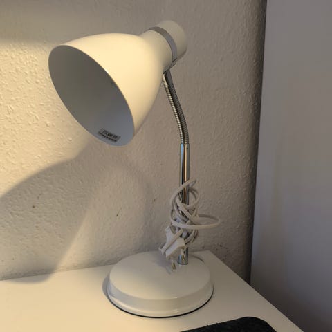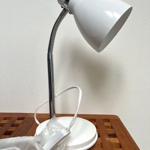 Nordlux Cyclone lampe i hvid metal med klemmebeslag. Lampen er designet til at blive fastgjort på kanter som borde eller hylder og har en justerbar arm. Materialet er metal, og farven er hvid. Lampen er velegnet til brug på skriveborde eller arbejdsområder.