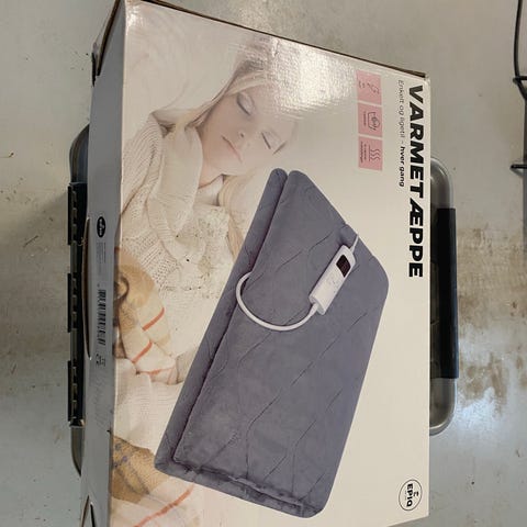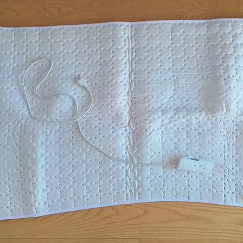 Ole Brødrene Hansen Standard Varmetæppe elektrisk varmeplaid med målene 150x80 cm. Varmetæppet er i hvidt stof med blå mønster og har tilhørende ledning og kontrolenhed. Anvendes til opvarmning og komfort.