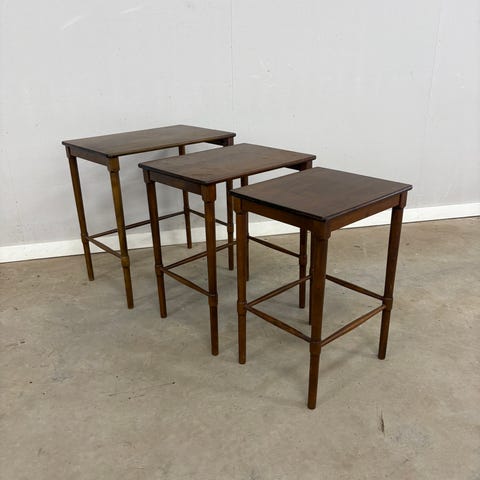 3 stk. indskudsborde, formentlig i nøddetræ, 64x45, 41x38, 32x32 cm.