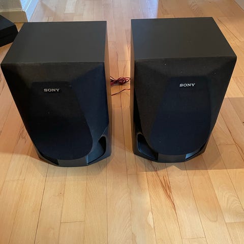 Sony High Power Audio System HXB-FX i sort farve. Systemet har to store højttalerenheder med LED-lyseffekter og en integreret forstærker. Den har flere tilslutningsmuligheder inklusiv, Bluetooth RCA-indgange og antenne. Designet til indendørs brug med fokus på lydstyrke og basgengivelse.