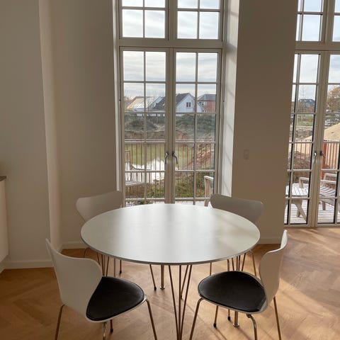 Piet Hein bord 115 x 115 super cirkulær med 4 Ensemple stole
