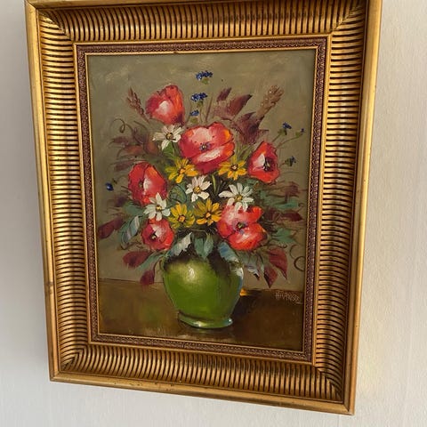 Smukt oliemaleri af Eva Harriet Hansen (1920 - 1987).